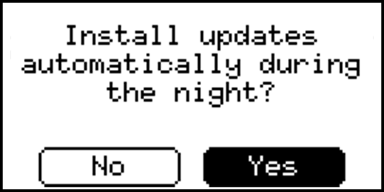- Handmatig: Indien ingeschakeld wordt een melding getoond wanneer een update beschikbaar is. Het apparaat installeert updates niet automatisch.